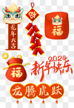 一组2024龙年春节新春卡通龙套图元素