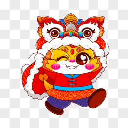 新年卡通舞狮少年