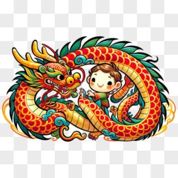 卡通可爱小孩和卡通中国龙