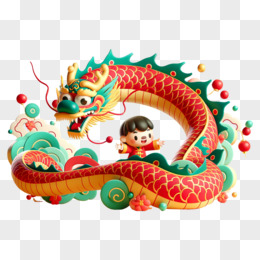 3d卡通可爱小孩与卡通中国龙