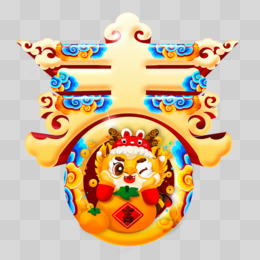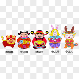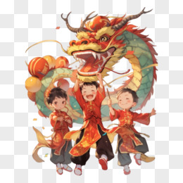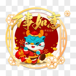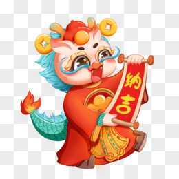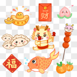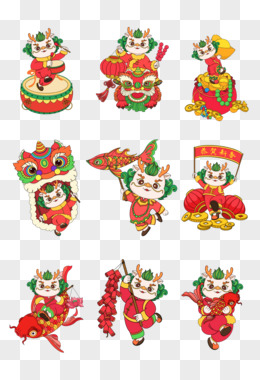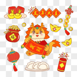 一组手绘免抠龙年卡通国潮合集免抠元素
