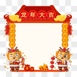 一组新年扇形标题2024龙年大吉卡通小龙合成元素二