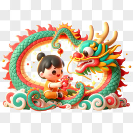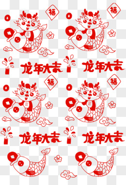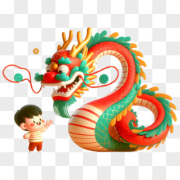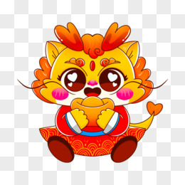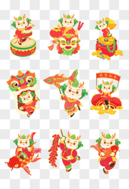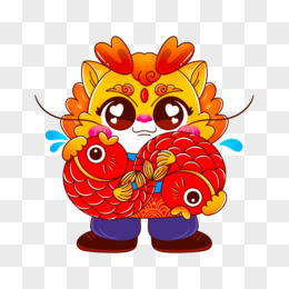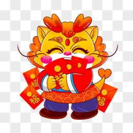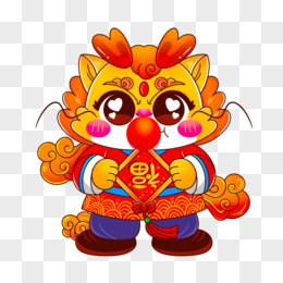 一组中国年卡通生肖合集之龙拿着红报免抠素材