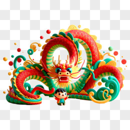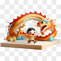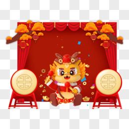 龙年新年2024年卡通小龙敲锣打鼓合成元素