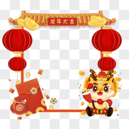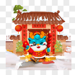 新年2024年龙年冬季屋檐大门卡通小龙合成元素