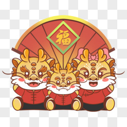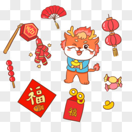 一组手绘免抠龙年卡通国潮合集七免抠元素