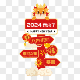 一组手绘免抠龙年卡通国潮合集一免抠元素