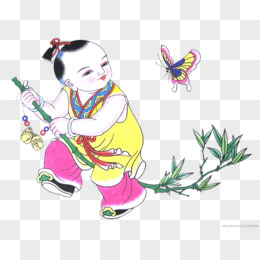 手拿对联的中国娃娃