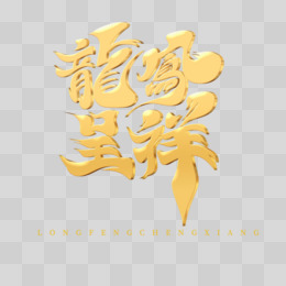 手绘风龙凤呈祥艺术字设计金色立体设计