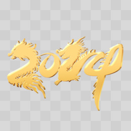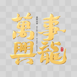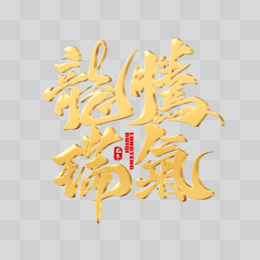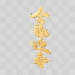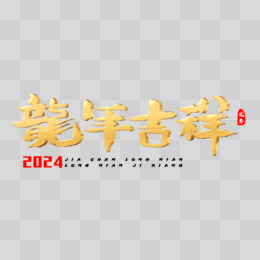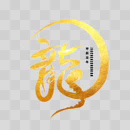 创意简洁书法龙年吉祥艺术字金色立体设计