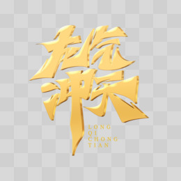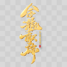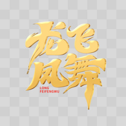 毛笔风龙飞凤舞艺术字设计金色立体设计