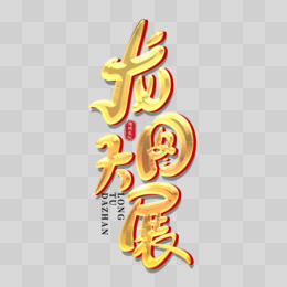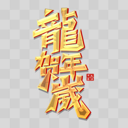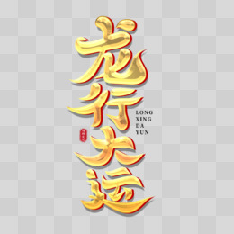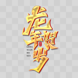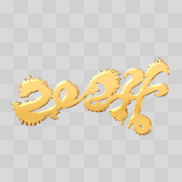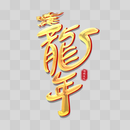 2024龙飞凤舞金色毛笔艺术字金色立体设计