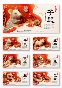 国潮时尚十二生肖传统文化挂画海报套图企业标语套图组合