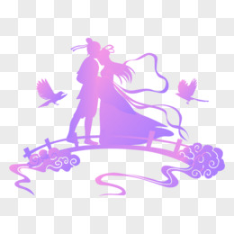 紫色浪漫牛郎织女相拥剪影矢量装饰元素