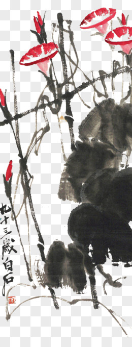 国风水墨荷花荷叶小场景元素