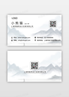 中国水墨风名片中国风水墨山水画背景商务名片模板