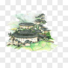 手绘中国特色建筑免抠元素
