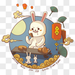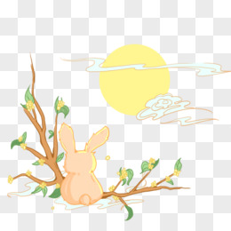 手绘月兔赏月免抠元素