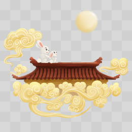 手绘卡通在屋顶上赏月的兔子 免抠元素