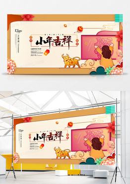 手绘卡通春节男孩女孩贴窗花场景免抠素材