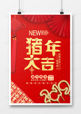 大气金色兔年新年剪纸兔中国结挂饰元素