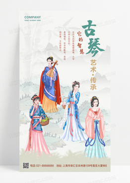 灰色水墨非遗文化古琴艺术人物绿色中国风海报海报