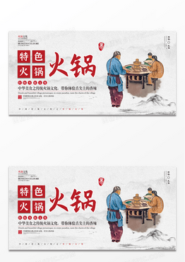 水墨传统美食之火锅文化中国传统文化展板