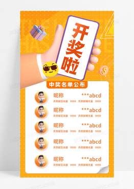 橙色渐变开奖啦中奖名单公布手机宣传海报