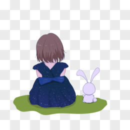 手绘中秋主题之小女孩和兔子