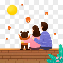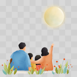 手绘一家人赏月背影场景免抠素材