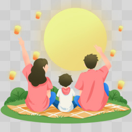 手绘卡通一家人赏月免抠素材