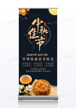 蓝色中秋特惠月饼送礼美食实图促销展架
