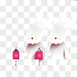 卡通扁平矢量免抠兔子抱着灯笼坐在月饼上素材
