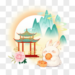 中秋节神话传说人物嫦娥奔月玉兔免抠元素