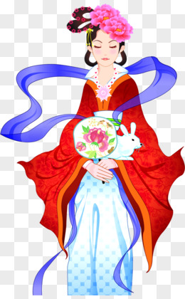 手绘中国风嫦娥奔月玉兔神话故事人物免抠元素