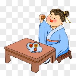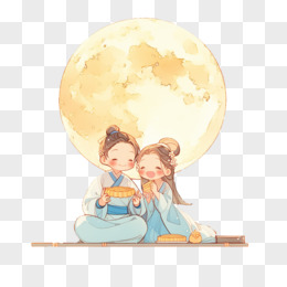 插画中秋一对穿着古风衣服的情侣坐在月亮下吃月饼吃月饼免抠元素