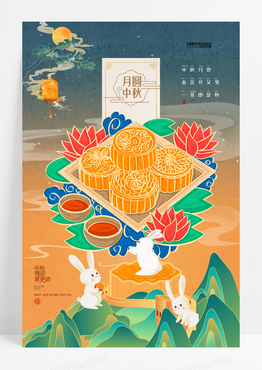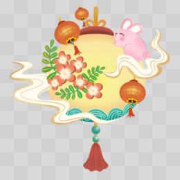 中国风国潮风中秋节月亮灯笼手绘边框元素