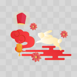 矢量中秋月宫玉兔剪纸边框免抠元素
