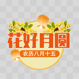 花好月圆立体卡通艺术字