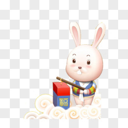 手绘兔子赏月元素