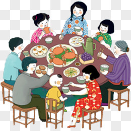 手绘中秋 一家人团圆赏月素材
