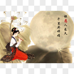 手绘噪点肌理插画风屋顶赏月的兔子元素