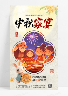 创意手绘点灯笼家人团圆赏月开心团聚素材