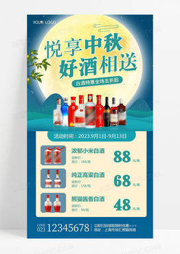国潮绿色悦享中秋好酒相送中秋白酒手机文案海报