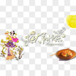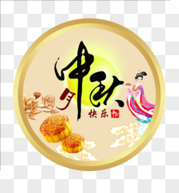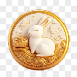 巨大的金色月亮可爱的兔子和月饼中秋节免抠元素