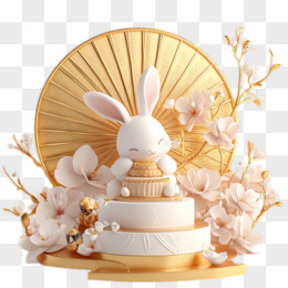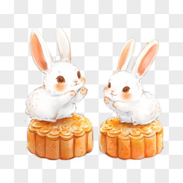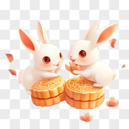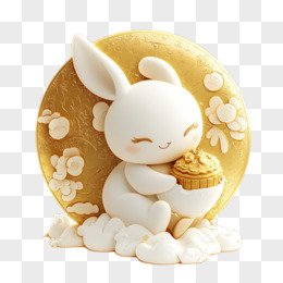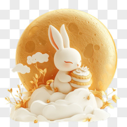 可爱的小兔子抱着月饼中秋节创意3D元素