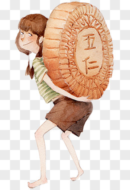 中秋节之手绘卡通女孩抱着月饼奔跑