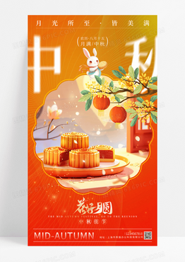 橙色渐变插画中秋月饼礼盒中秋节手机宣传海报