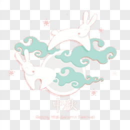 手绘玉兔赏月免抠元素