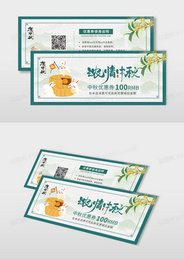绿色国风纸质纹理中国风浓情中秋中秋节优惠券中秋节代金券中秋优惠券
